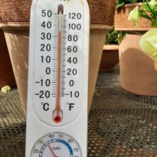 書き始めて、外の温度計を見てきたら、36℃! (写真は下から撮ったので少し低めに見えますが) 今日は、曇りがちで直射日光の下ではありません。 ただし、湿度が30数%というのが日本との違いでしょうね。 この温度で、湿度… 続きを読む 暑っ