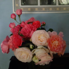 クイーンエリザベスが、今頃開花なんて初めてです。 彼女達の植わっているところは、正午から日没まで、陽が当たり続けます。 今頃咲いてくれると、開花したその日にカラカラに干からびてしまいます。 そこで、今年は、朝の水遣りのと… 続きを読む bouquet